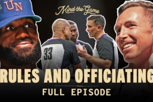 詹姆斯和纳什现场点评了一些比赛片段的吹罚情况。