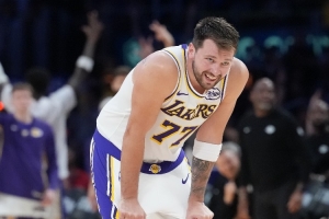 东契奇出战43分钟,投篮26中10,三分球14中4,罚球9中6,拿下30分11篮板13助攻1抢断3盖帽的数据,不过也有6次失误。